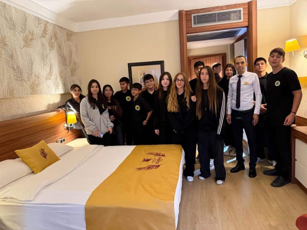 Otelin Ön büro, Housekeeping, Mutfak, Servis ve diğer tüm departmanlarını departman müdürleri tanıtıp öğrencilerimize ayrıntılı bilgi verdiler.